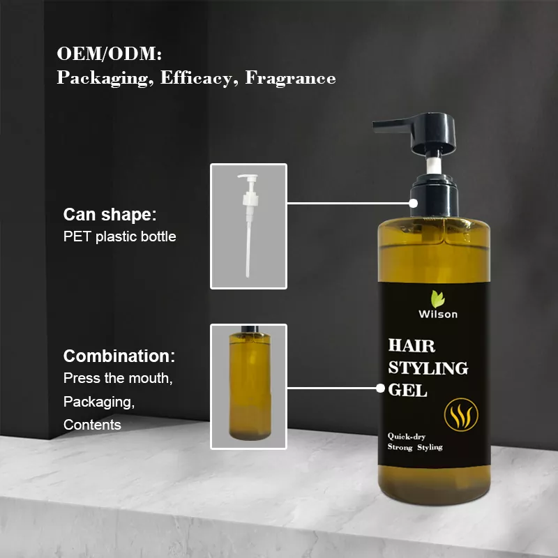 Með því að bæta lífskjörin verða snyrtivörur í hárstíl að verða sífellt vinsælli. Wilson Nature sveigjanlegt erfitt hárstíll hlaup snyrtivörur vísar til hárstíls og breyttra áhrifa snyrtivörunnar, úðað eða beitt á hárið, uppgufun leysisins og þurrkun á hárið til að mynda gegnsæja kvikmynd, svo að hártrefjarnir til að herða og viðhalda lögun tilgangsins til að mæta þörfum ýmissa hárgreiðslna.