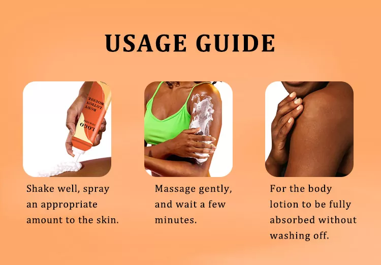 Wilson hressandi rakagefandi líkamsbólgu, sem ekki er sticky body, er í uppáhaldi hjá neytenda með léttri freyðandi áferð sinni, skjótum frásog af einni sekúndu mjólk og djúpri, ósteypt rakagefandi tilfinningu sem endurskilgreinir líkams rakakrem, tilvalin til skilvirkni og ánægju í nútímalegu, uppteknu lífi okkar. Formúlan okkar styður bæði blautan og þurra líkamsnotkun, en er jafnvel árangursríkari þegar hún er notuð örlítið rakt eftir að hafa farið í sturtu til að læsa raka. Hér er hvernig á að nota það: